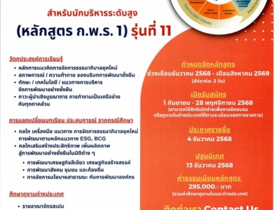 เทศบาลเมืองแม่โจ้ ขอประชาสัมพันธ์ หลักสูตรการบริหารกิจการบ้านเมืองที่ดีเพื่อการพัฒนาอย่างยั่งยืน สำหรับนักบริหารระดับสูง (รุ่นที่ 11)
