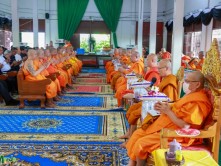 โดยมี พระครูโกศลธรรมวิจัย (สุวรรณ ธมฺมวิจาโร) เจ้าคณะอำเภอสันทราย เจ้าอาวาสวัดข้าวแท่นหลวง เป็นประธานฝ่ายสงฆ์ พร้อมด้วยคณะสงฆ์ในอำเภอสันทรายและอำเภอแม่ริม ร่วมประกอบพิธีด้วยความสงบและสมเกียรติ