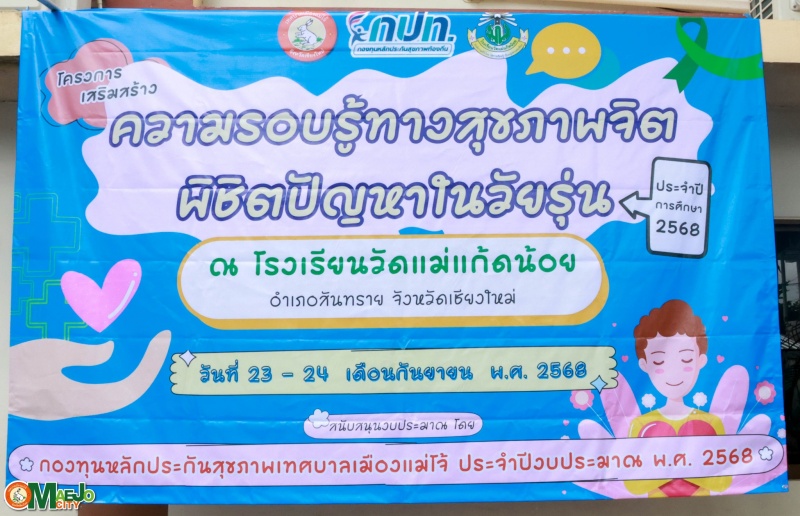 โครงการนี้จัดขึ้นในระหว่างวันที่ 23 - 24 กันยายน 2568 โดยโรงเรียนวัดแม่แก้ดน้อย งบประมาณจากกองทุนหลักประกันสุขภาพเทศบาลเมืองแม่โจ้ เพื่อสร้างความตระหนักรู้ด้านสุขภาพจิต ส่งเสริมให้เยาวชนมีความเข้าใจในการดูแลสุขภาพใจของตนเอง รับมือกับปัญหา และเสริมสร้างพลังใจในการก้าวสู่อนาคตที่มั่นคงและมีคุณภาพ