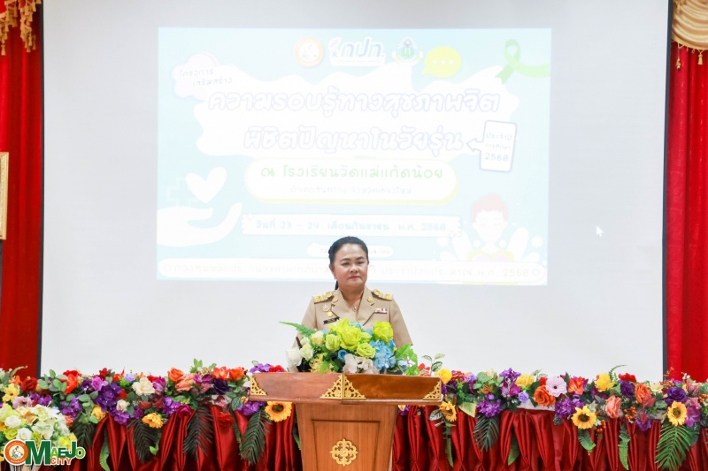 วันที่ 23 กันยายน 2568 นางทัศนีย์ ทิพนี นายกเทศมนตรีเมืองแม่โจ้ เป็นประธานเปิดโครงการ "เสริมสร้างความรอบรู้ทางสุขภาพจิต พิชิตปัญหาในวัยรุ่น" ณ โรงเรียนวัดแม่แก้ดน้อย อำเภอสันทราย จังหวัดเชียงใหม่ พร้อมด้วยคณะผู้บริหารเทศบาล สมาชิกสภาเทศบาลเมืองแม่โจ้ ข้าราชการ และเจ้าหน้าที่เทศบาล เข้าร่วมในพิธีเปิดอย่างอบอุ่น