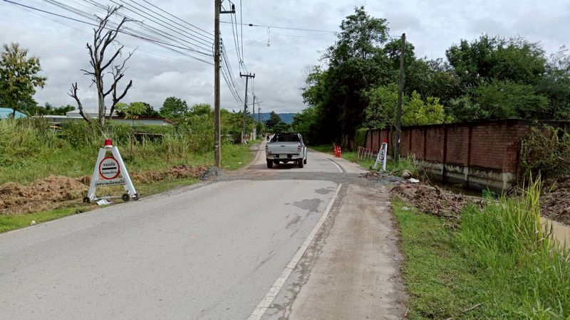 - ฉีดล้างเศษดินโคลน ซอยเสี้ยวบ้าน แม่โจ้