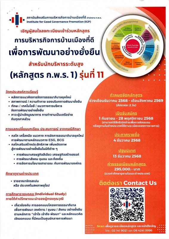 เทศบาลเมืองแม่โจ้ ขอประชาสัมพันธ์ หลักสูตรการบริหารกิจการบ้านเมืองที่ดีเพื่อการพัฒนาอย่างยั่งยืน สำหรับนักบริหารระดับสูง (รุ่นที่ 11)