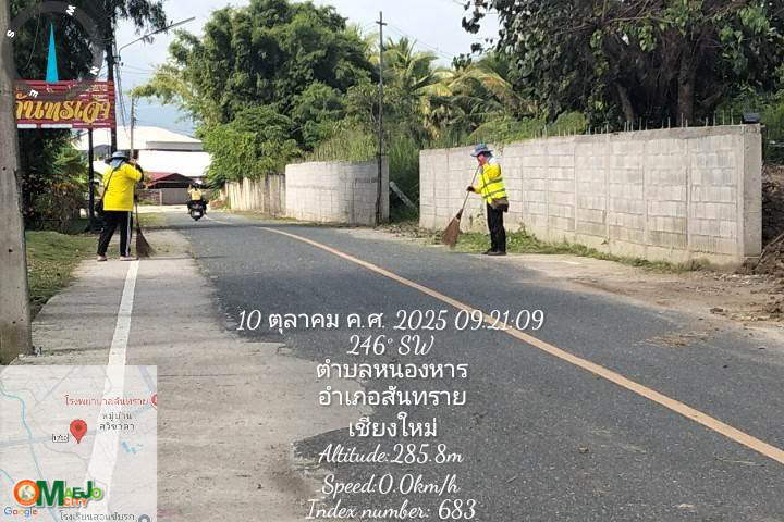 - กวาดถนนสายหลัก เก็บขยะ และตัดต้นชา (ถนนเชียงใหม่-พร้าว / สันทรายสายเก่า)