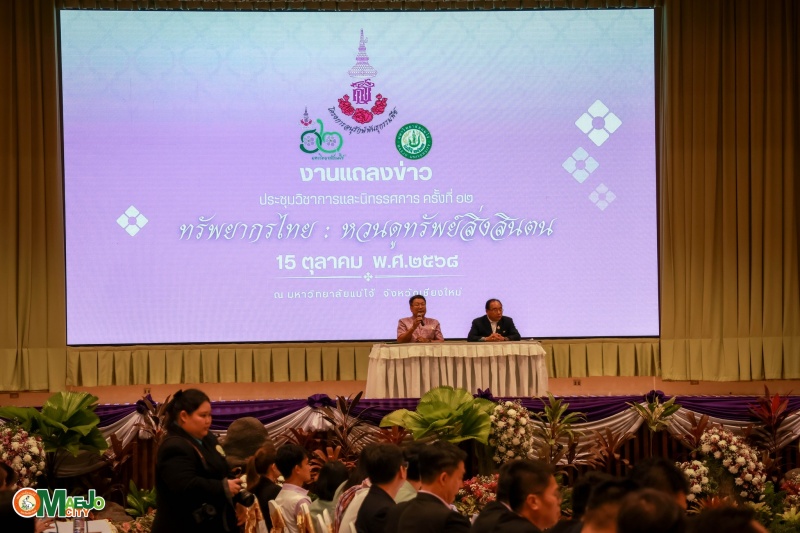 นางทัศนีย์ ทิพนี นายกเทศมนตรีเมืองแม่โจ้ พร้อมด้วย นายเกรียงไกร ใจกล้า ประธานสภาเทศบาลเมืองแม่โจ้ เข้าร่วมงานแถลงข่าวการประชุมวิชาการและนิทรรศการ ภายใต้หัวข้อ "ทรัพยากรไทย : หวนดูทรัพย์สิ่งสินตน" ซึ่งเป็นเวทีสำคัญในการนำเสนอแนวทางการอนุรักษ์และใช้ประโยชน์จากทรัพยากรไทยอย่างยั่งยืน