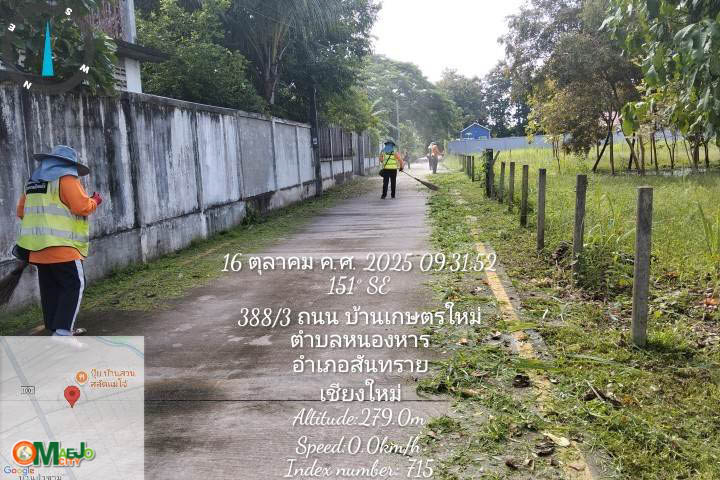 - กวาดถนนสายหลัก เก็บขยะ และตัดต้นชา (ถนนเชียงใหม่-พร้าว / สันทรายสายเก่า)