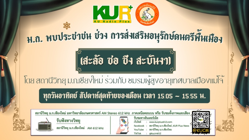 เทศบาลเมืองแม่โจ้ ขอประชาสัมพันธ์ ม.ก.พบปะประชาชน ช่วงการส่งเสริมอนุรักษ์ดนตรีพื้นเมือง