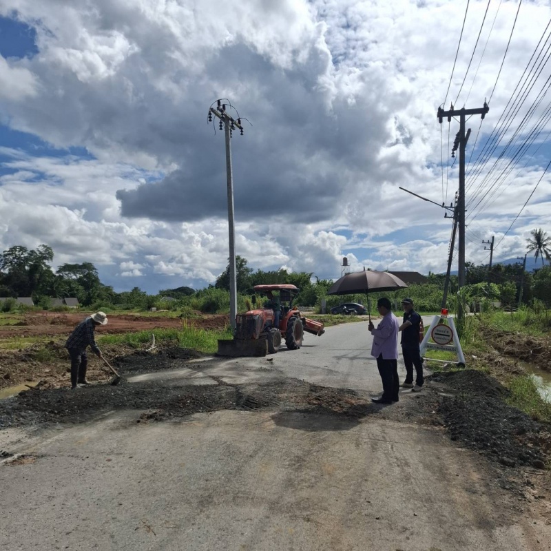 - ฉีดล้างเศษดินโคลน ซอยเสี้ยวบ้าน แม่โจ้