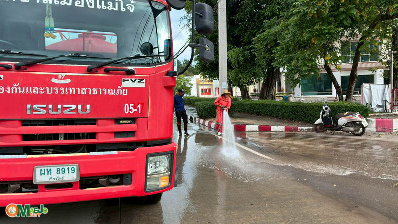 - ล้างถนนตั้งแต่สะพานน้ำโจ้ถึงประตูหน้ามหาวิทยาลัยแม่โจ้ ตามแผนปฏิบัติงาน