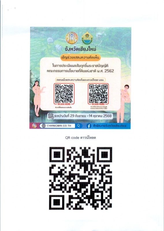 เทศบาลเมืองแม่โจ้ ขอประชาสัมพันธ์ ขอเชิญชวนท่านร่วมแสดงความคิดเห็นในการประเมินผลสัมฤทธิ์ของความคิดเห็นต่อพระราชบัญญัติคณะกรรมการนโยบายที่ดินแห่งชาติ พ.ศ.2562 ฯ