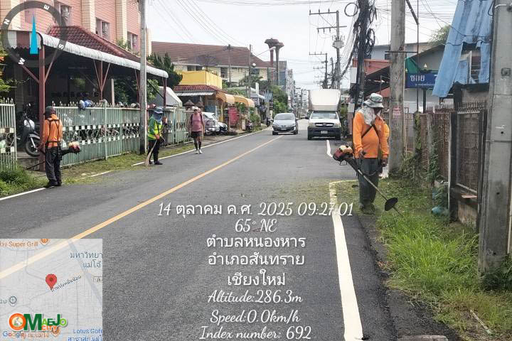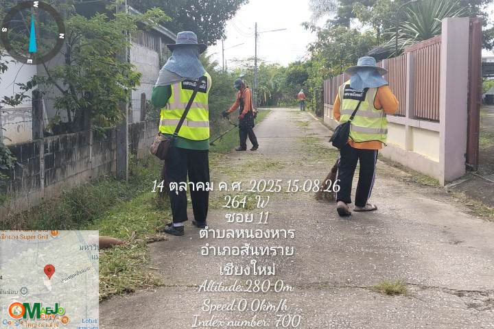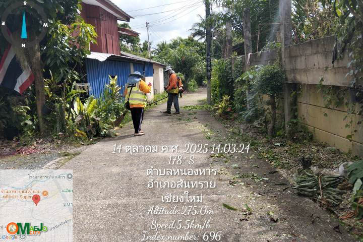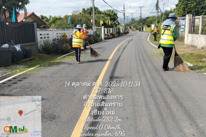 - กวาดถนนสายหลัก เก็บขยะ และตัดต้นชา (ถนนเชียงใหม่-พร้าว / สันทรายสายเก่า)