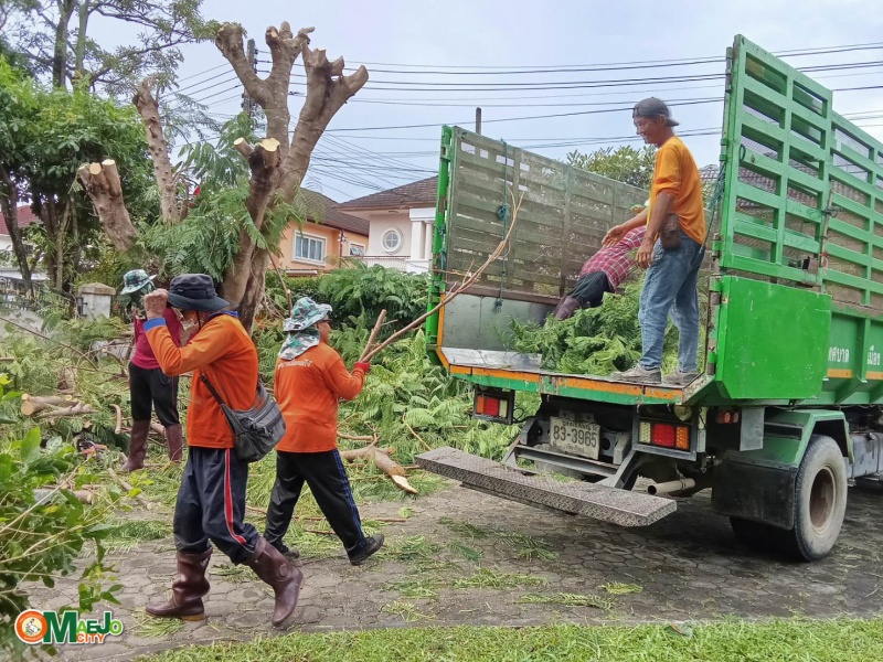 - พัฒนาชุมชนแม่โจ้ - ตัดหญ้า กวาดถนน เก็บกวาด ตัดกิ่งไม้ และล้างถนน