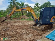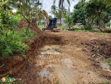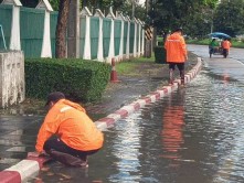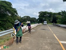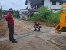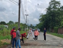 - เก็บกวาดเศษวัชพืชข้างทางน้ำ ถนนสายหลัง