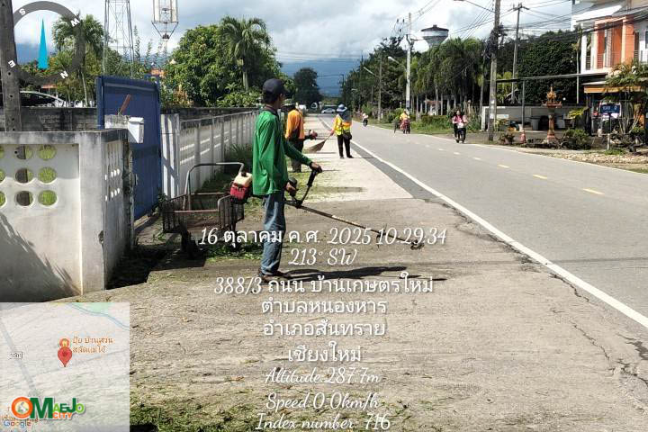 - พัฒนาชุมชนเกษตรใหม่ - ตัดหญ้า กวาดถนน เก็บกวาด ตัดกิ่งไม้ และล้างถนน