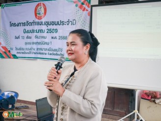 เทศบาลเมืองแม่โจ้ ลงพื้นที่บูรณาการสื่อสารชุมชน ทบทวนแผนชุมชน รวมพลังแก้ไขปัญหายาเสพติด และส่งเสริมการจัดตั้งกองทุนแม่ของแผ่นดิน ชุมชนสหกรณ์นิคม 1