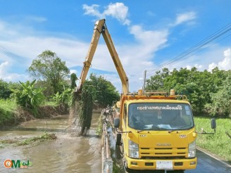 เทศบาลเมืองแม่โจ้ ประสาน อบจ.เชียงใหม่ เร่งแก้ปัญหาน้ำโคลนขังด้วยการดูดโคลน