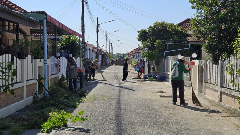 - พัฒนาชุมชนพัฒนาทรายแก้ว - ตัดหญ้า กวาดถนน เก็บกวาด ตัดกิ่งไม้ และล้างถนน