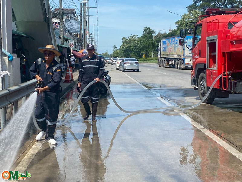 - ล้างถนน เส้นทางเสด็จ ฝั่งทิศตะวันตกตั้งแต่หน้าตลาดแม่โจ้จนถึงหน้าเทศบาลเมืองแม่โจ้