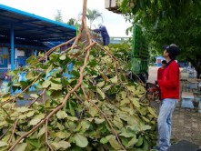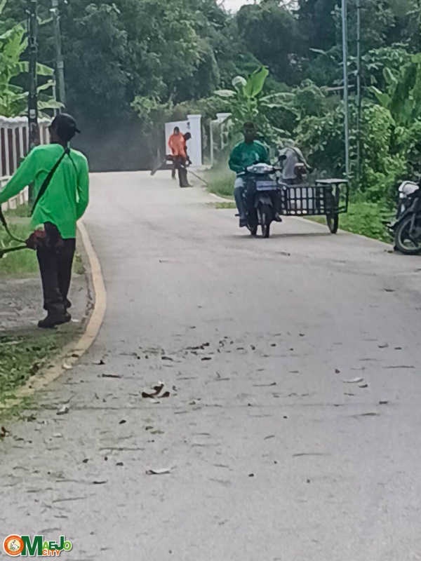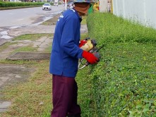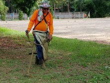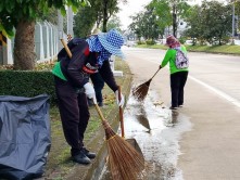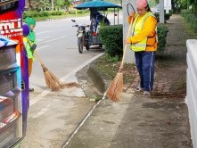 - กวาดถนน เก็บขยะ และตัดต้นชา