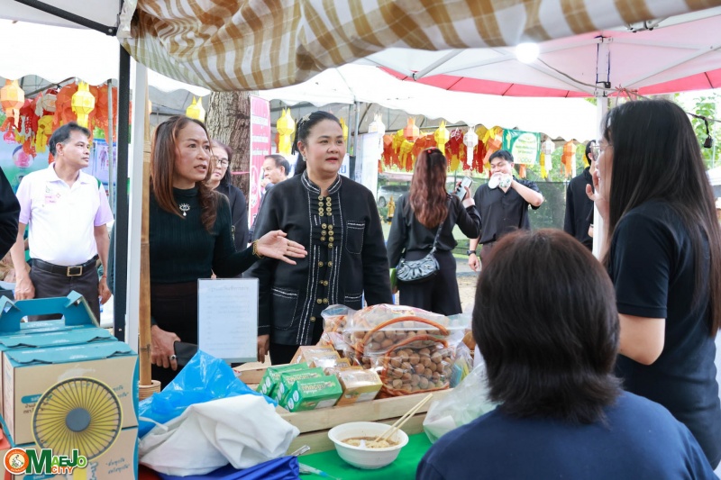 นายกเทศมนตรีเมืองแม่โจ้ ลงพื้นที่ตรวจเยี่ยมและปรับพื้นที่ร้านค้าชุมชน โซนกิจกรรม "แม่โจ้ยี่เป็งรำลึก" ภายในงานนิทรรศการ "ทรัพยากรไทย : หวนดูทรัพย์สิ่งสินตน"