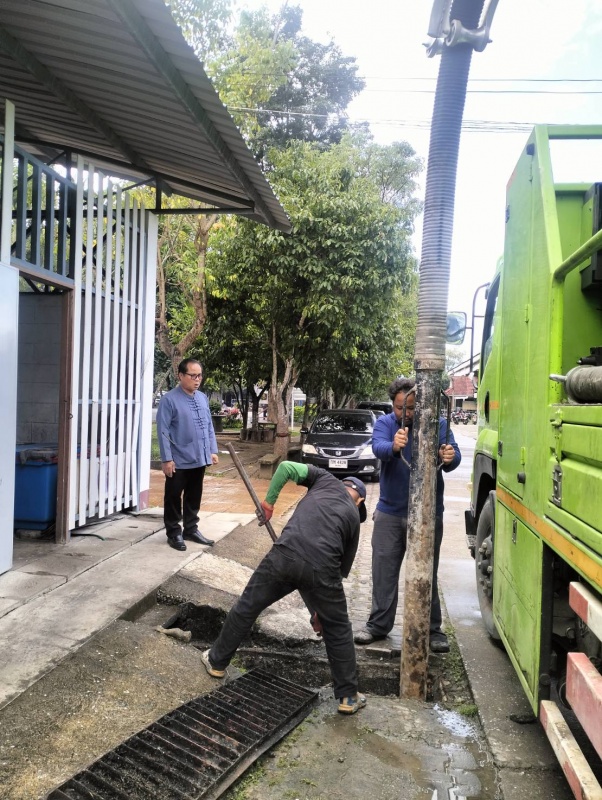 - ดูดโคลนรางระบายน้ำโรงเรียนสันทรายวิทยาคม