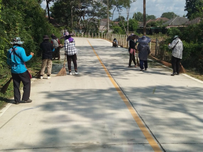 - กวาดถนน เก็บขยะ และตัดต้นชา