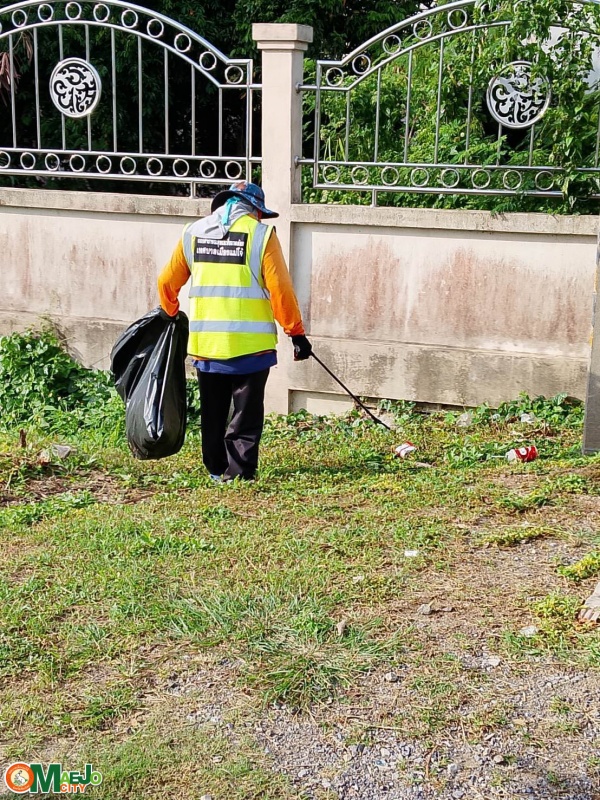 - กวาดถนน เก็บขยะ และตัดต้นชา