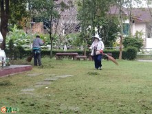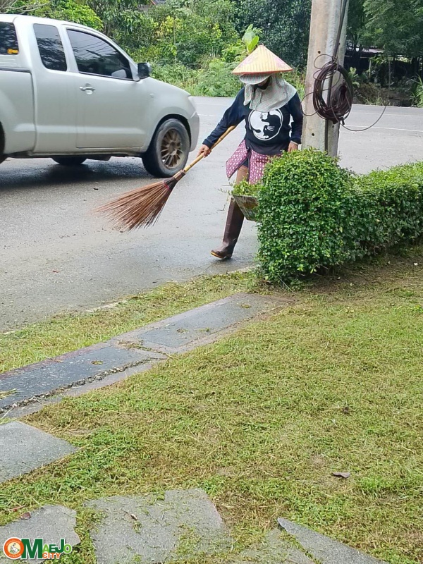 - กวาดถนน เก็บขยะ และตัดต้นชา