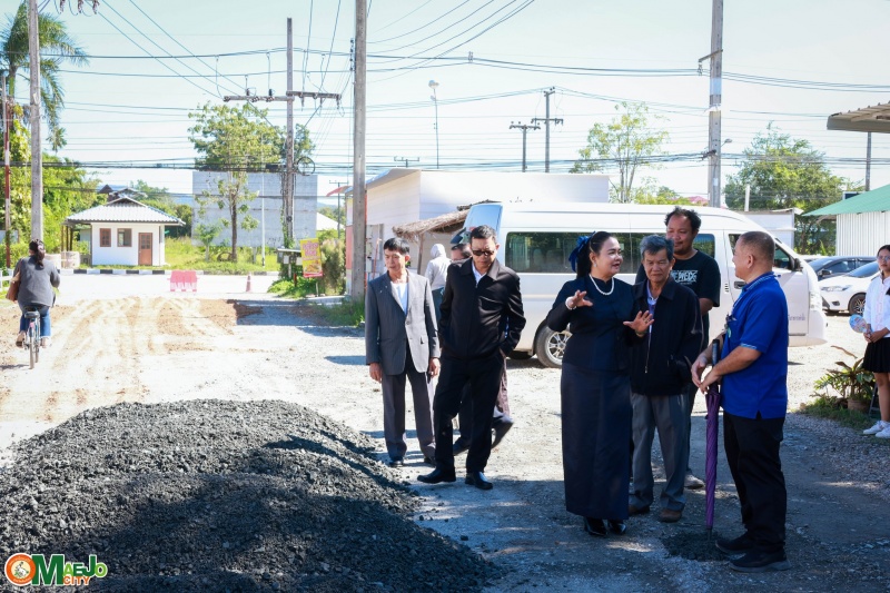 นางทัศนีย์ ทิพนี นายกเทศมนตรีเมืองแม่โจ้ พร้อมด้วยคณะผู้บริหาร สมาชิกสภาเทศบาล และผู้อำนวยการกองการศึกษา ลงพื้นที่ติดตามการปรับปรุงถนนบริเวณข้างโรงพยาบาลสันทราย หลังพบว่าพื้นผิวถนนเดิมชำรุด เป็นหลุมเป็นบ่อ และส่งผลกระทบต่อความปลอดภัยในการสัญจรของประชาชน