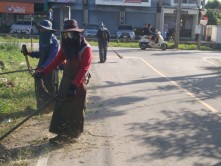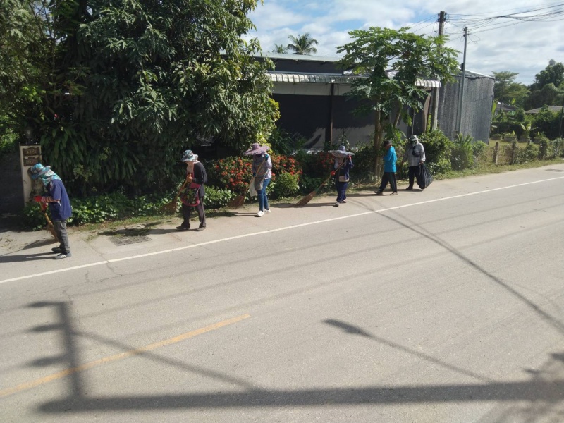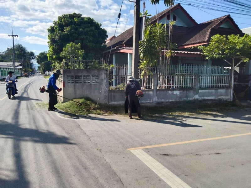 - กวาดถนน เก็บขยะ และตัดต้นชา