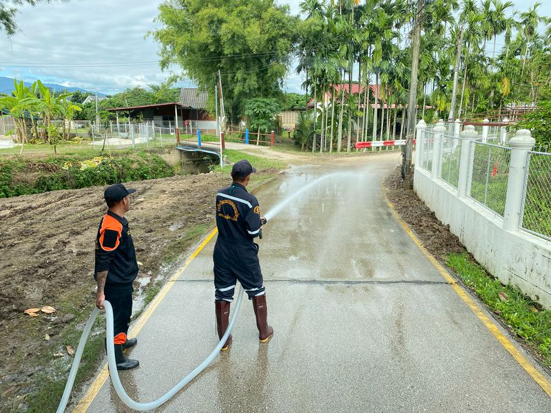 - ล้างถนนในพื้นที่ชุมชนป่าบง