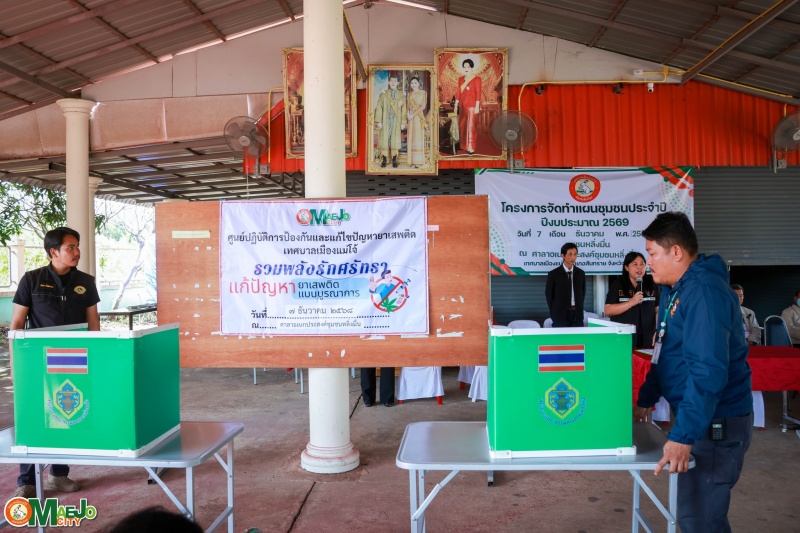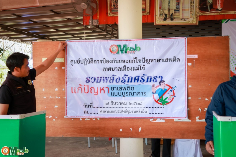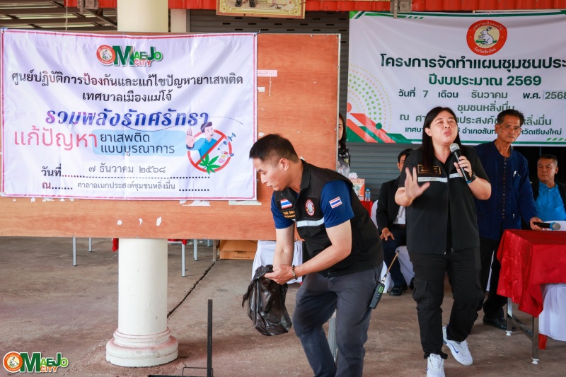 เทศบาลเมืองแม่โจ้ดำเนินโครงการบูรณาการสื่อสารชุมชน ทบทวนแผนชุมชน รวมพลังศรัทธาแก้ปัญหายาเสพติดแบบบูรณาการ พร้อมทั้งส่งเสริมการจัดตั้ง "กองทุนแม่ของแผ่นดิน" ระหว่างวันที่ 7, 13, 20 ธันวาคม 2568 และ 17, 24, 31 มกราคม 2569