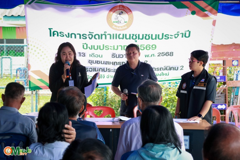 เทศบาลเมืองแม่โจ้ ลงพื้นที่บูรณาการสื่อสารชุมชน ทบทวนแผนชุมชน รวมพลังแก้ไขปัญหายาเสพติด และส่งเสริมการจัดตั้งกองทุนแม่ของแผ่นดิน ชุมชนสหกรณ์นิคม 2
