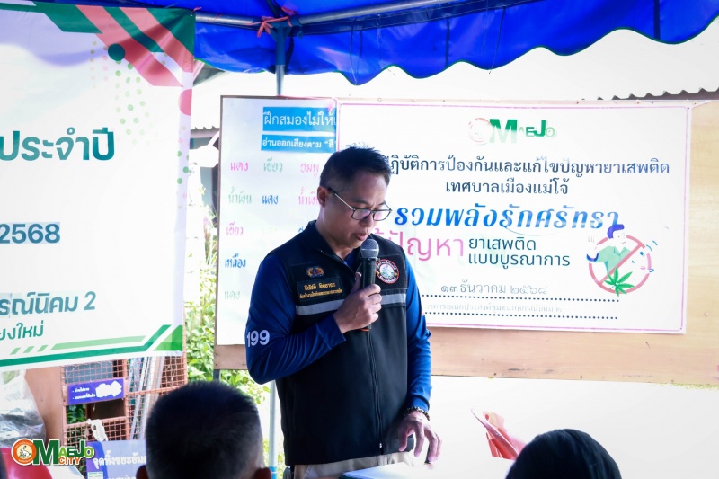 เทศบาลเมืองแม่โจ้ ดำเนินโครงการ บูรณาการสื่อสารชุมชน ทบทวนแผนชุมชน รวมพลังศรัทธาแก้ไขปัญหายาเสพติดแบบบูรณาการ พร้อมส่งเสริมการจัดตั้ง "กองทุนแม่ของแผ่นดิน" ระหว่างวันที่ 7, 13, 20 ธันวาคม 2568 และวันที่ 17, 24, 31 มกราคม 2569
