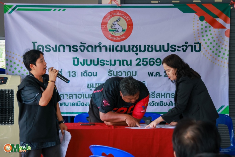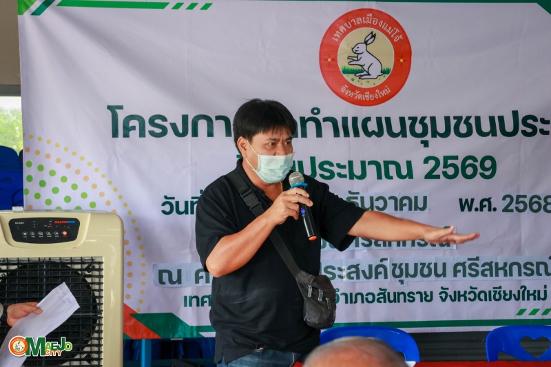 เทศบาลเมืองแม่โจ้ ดำเนินโครงการ บูรณาการสื่อสารชุมชน ทบทวนแผนชุมชน รวมพลังศรัทธาแก้ไขปัญหายาเสพติดแบบบูรณาการ พร้อมส่งเสริมการจัดตั้ง "กองทุนแม่ของแผ่นดิน" ระหว่างวันที่ 7, 13, 20 ธันวาคม 2568 และวันที่ 17, 24, 31 มกราคม 2569