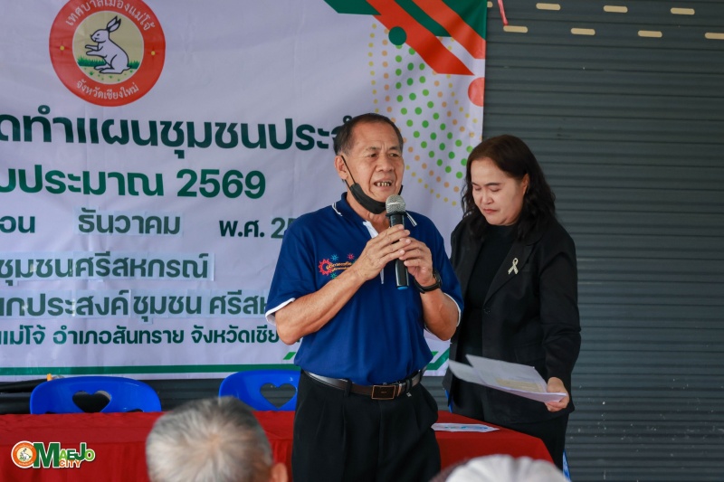 เทศบาลเมืองแม่โจ้ ลงพื้นที่บูรณาการสื่อสารชุมชน ทบทวนแผนชุมชน รวมพลังแก้ไขปัญหายาเสพติด และส่งเสริมการจัดตั้งกองทุนแม่ของแผ่นดิน ชุมชนศรีสหกรณ์
