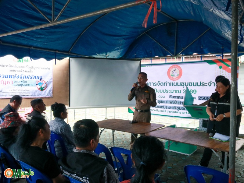 เทศบาลเมืองแม่โจ้ ลงพื้นที่บูรณาการสื่อสารชุมชน ทบทวนแผนชุมชน รวมพลังแก้ไขปัญหายาเสพติด และส่งเสริมการจัดตั้งกองทุนแม่ของแผ่นดิน