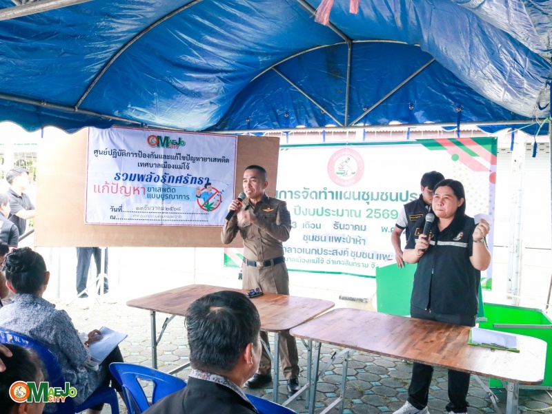 เทศบาลเมืองแม่โจ้ ดำเนินโครงการ บูรณาการสื่อสารชุมชน ทบทวนแผนชุมชน รวมพลังศรัทธาแก้ไขปัญหายาเสพติดแบบบูรณาการ พร้อมส่งเสริมการจัดตั้ง "กองทุนแม่ของแผ่นดิน" ระหว่างวันที่ 7, 13, 20 ธันวาคม 2568 และวันที่ 17, 24, 31 มกราคม 2569