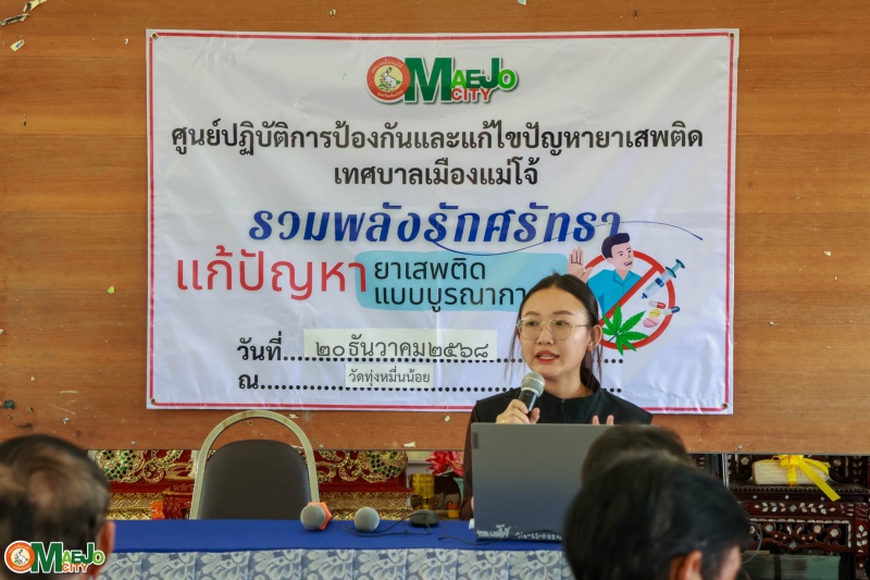 เทศบาลเมืองแม่โจ้ ดำเนินโครงการ บูรณาการสื่อสารชุมชน ทบทวนแผนชุมชน รวมพลังศรัทธาแก้ไขปัญหายาเสพติดแบบบูรณาการ พร้อมทั้งส่งเสริมการจัดตั้ง "กองทุนแม่ของแผ่นดิน" ระหว่างวันที่ 7, 13, 20 ธันวาคม 2568 และ 17, 24, 31 มกราคม 2569