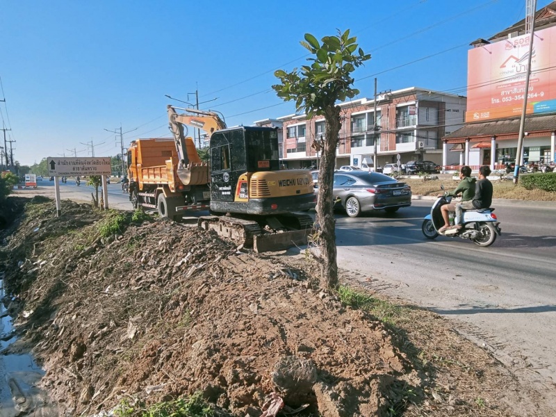 - ขุดลอกลำเหมืองข้างถนนสายหลัก ก่อนถึงสำนักงานที่ดิน