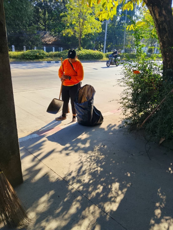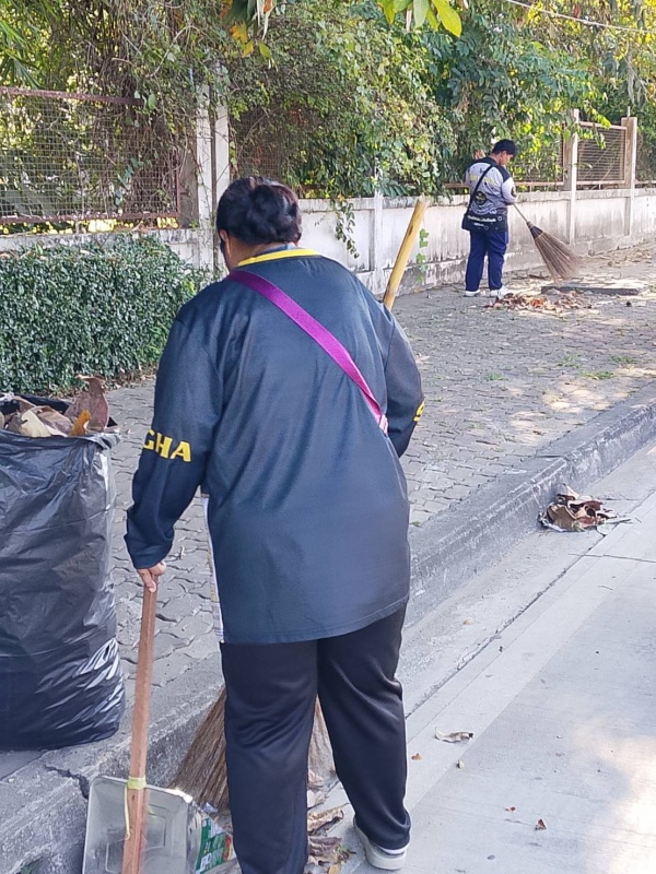 - กวาดถนน เก็บขยะ และตัดแต่งต้นชา