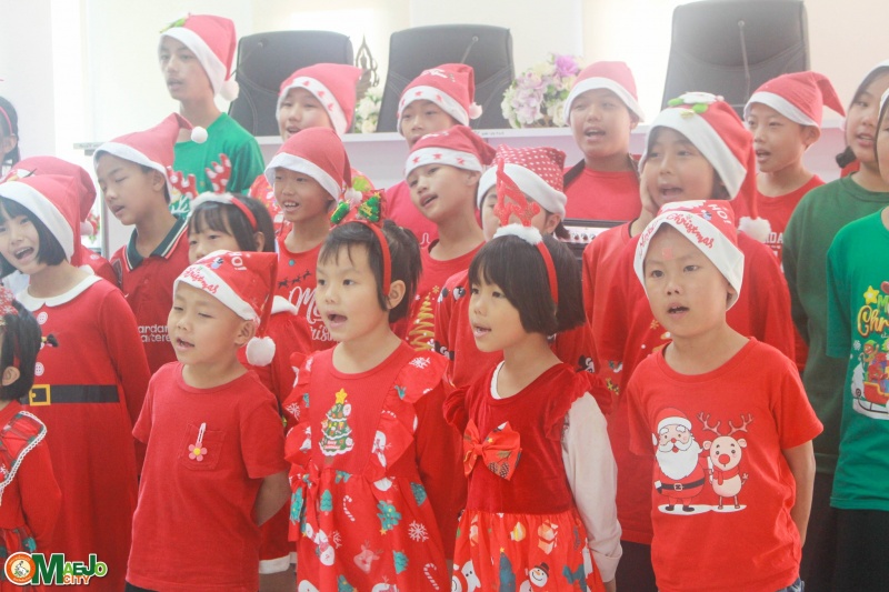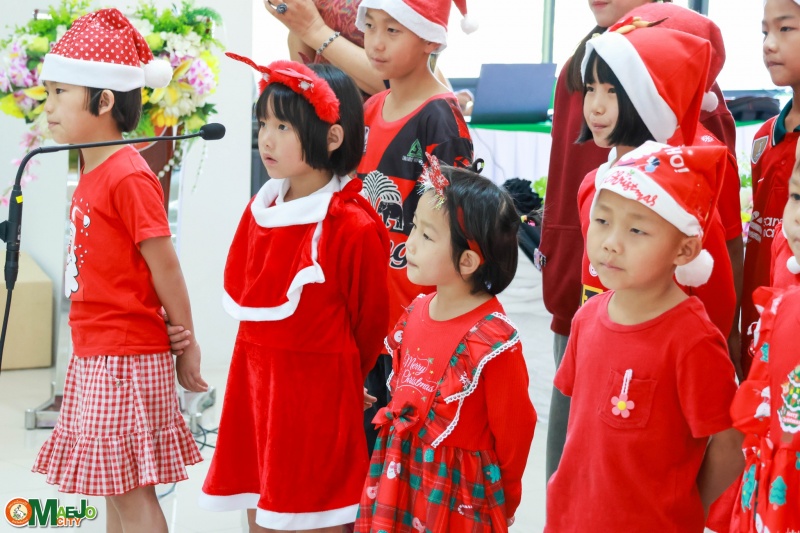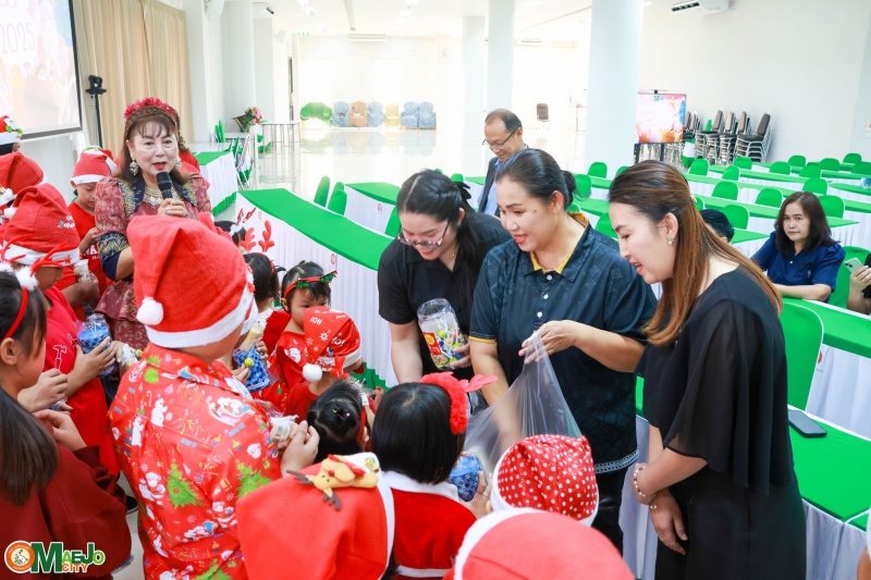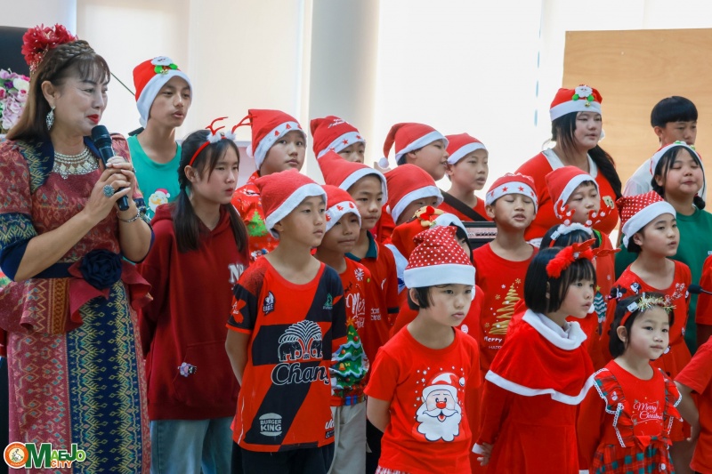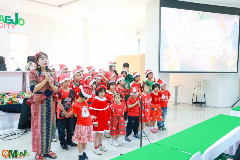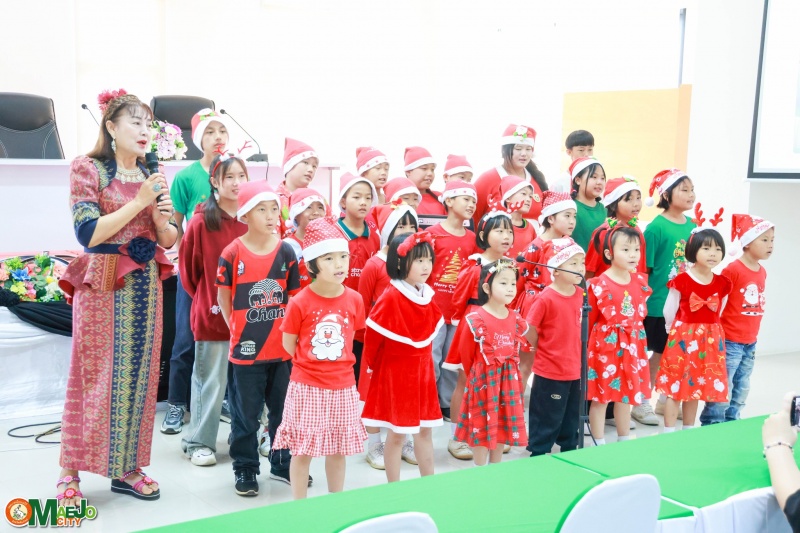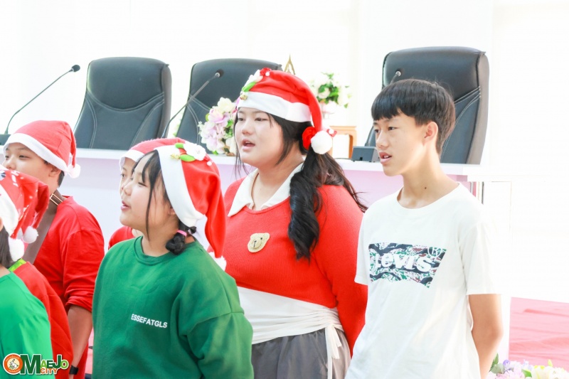 เทศบาลเมืองแม่โจ้ ร่วมต้อนรับคณะจากมูลนิธิแสงไทยดรุณ ร่วมร้องเพลงอวยพรเนื่องในวันคริสต์มาส