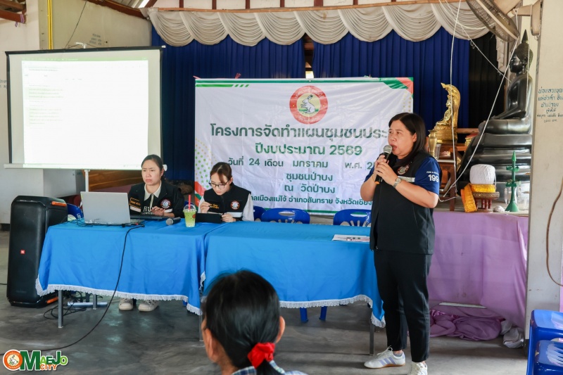 เทศบาลเมืองแม่โจ้ ลงพื้นที่บูรณาการสื่อสารชุมชน ทบทวนแผนชุมชน รวมพลังแก้ไขปัญหายาเสพติด และส่งเสริมการจัดตั้งกองทุนแม่ของแผ่นดิน ชุมชนป่าบง