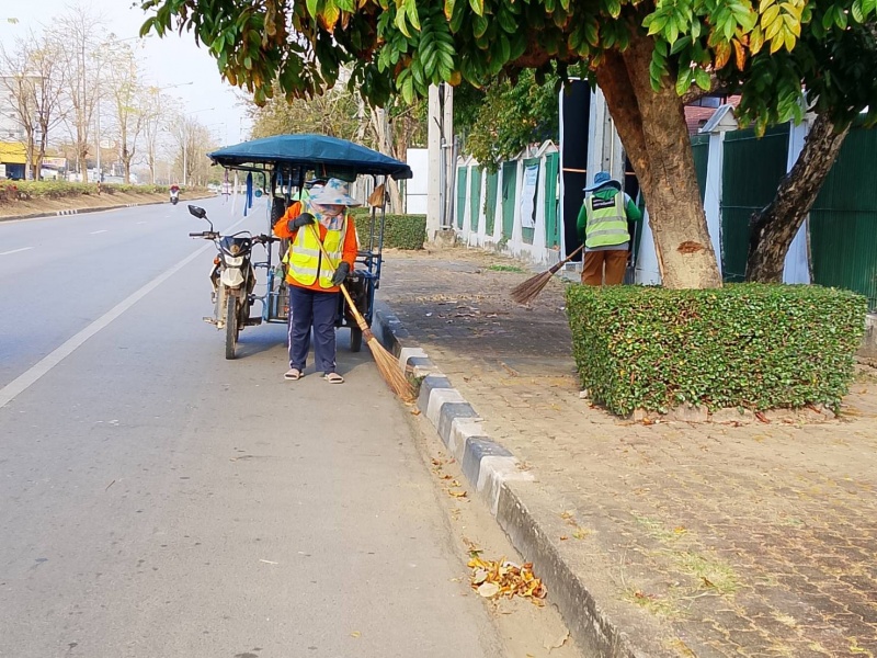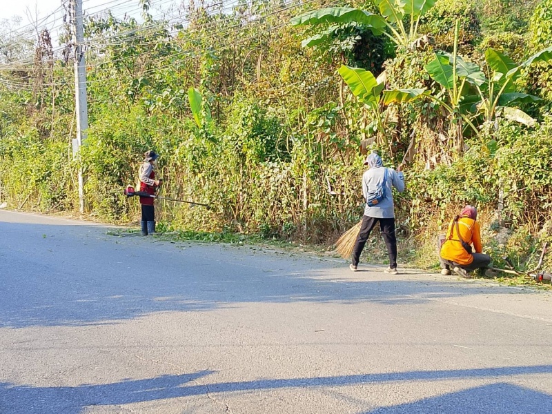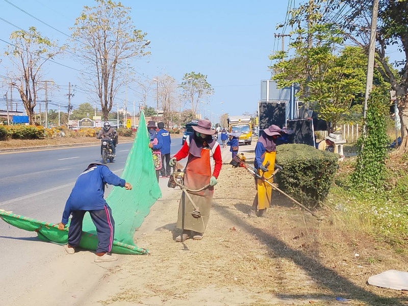 พัฒนาตัดหญ้าและเก็บขยะสองข้างทาง ถนนสายหลัก เชียงใหม่ - พร้าว และ ถนนสันทรายสายเก่า