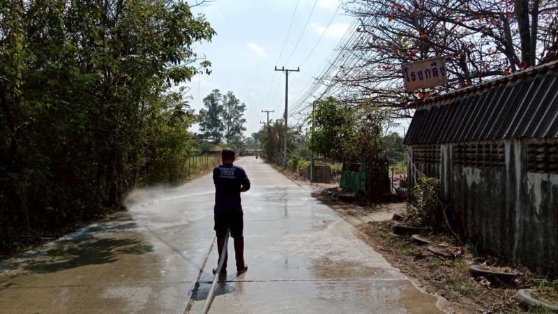ล้างถนนและพรมน้ำ ซอยสมหวัง ชุมชนทุ่งหมื่นน้อย