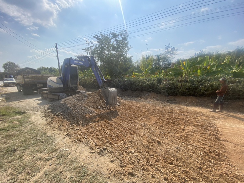 ปรับปรุงพื้นที่แนวถนน ชุมชนแม่โจ้ หมู่ที่ 4 แก้ไขถนนโค้งรูปตัวเอส