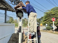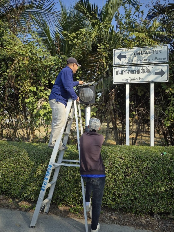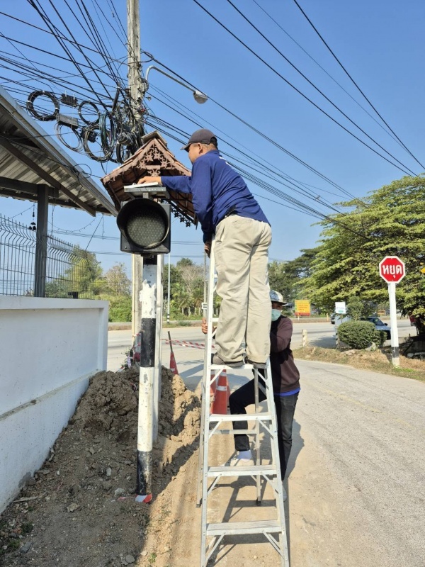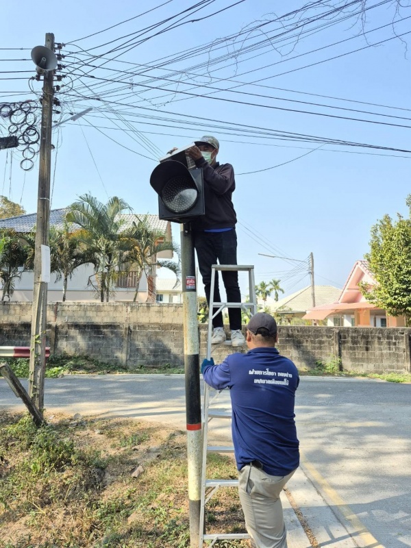 ทำความสะอาด ตรวจเช็ก และซ่อมไฟสัญญาณเตือนทางแยกในเขตเทศบาลเมืองแม่โจ้