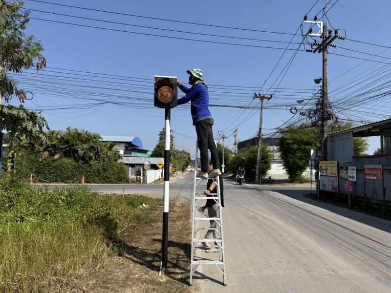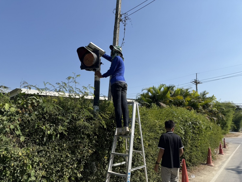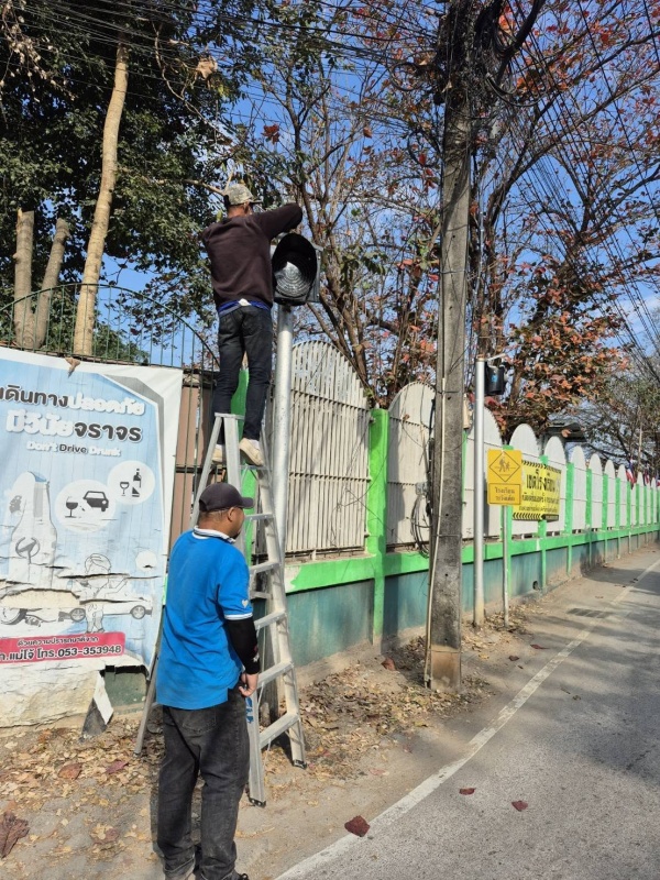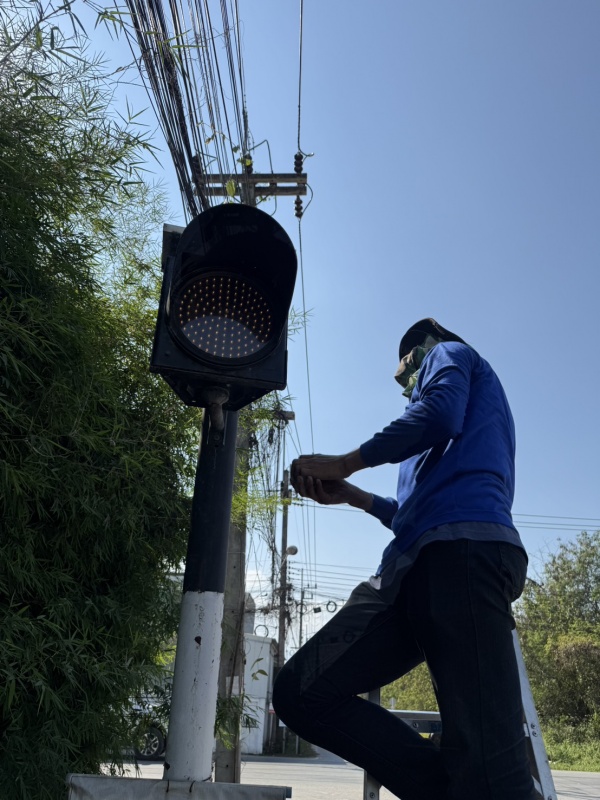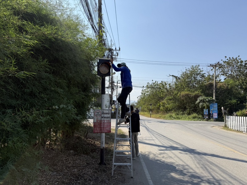 ทำความสะอาด ตรวจเช็ค และซ่อมไฟสัญญาณเตือนทางแยก ในเขตเทศบาลเมืองแม่โจ้