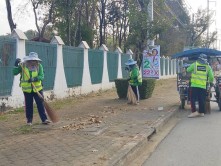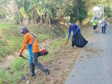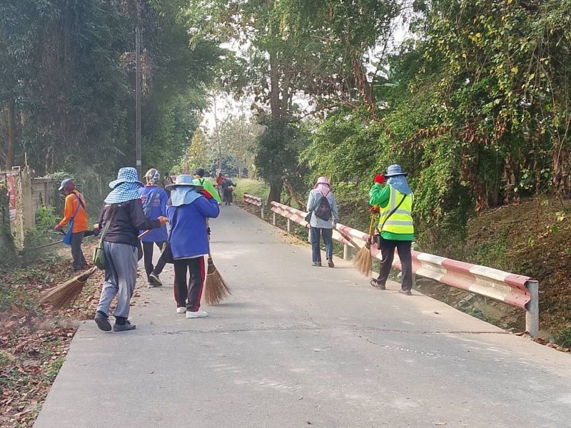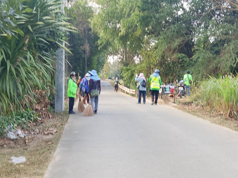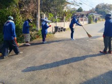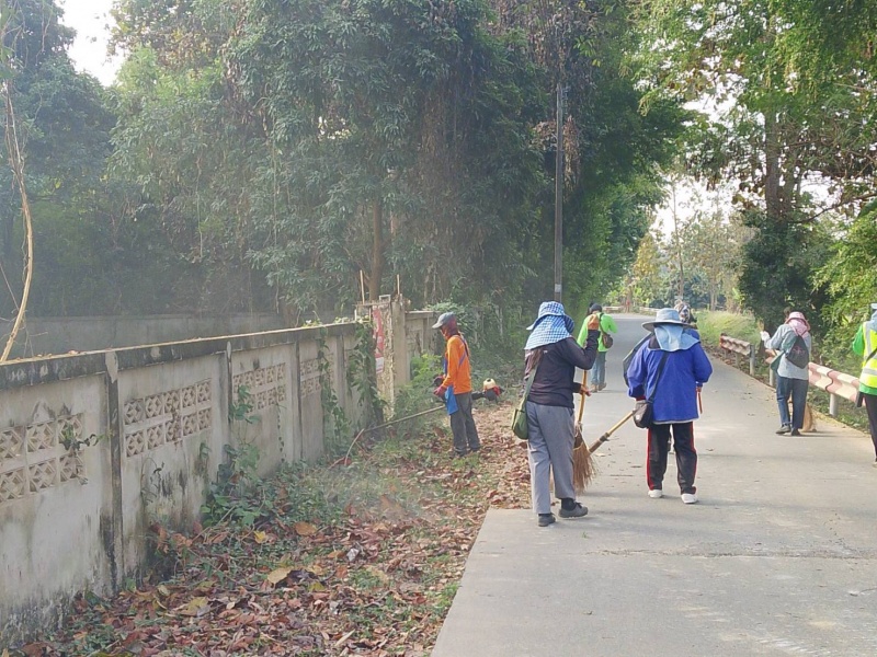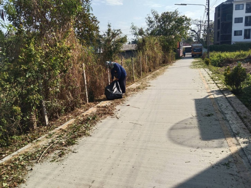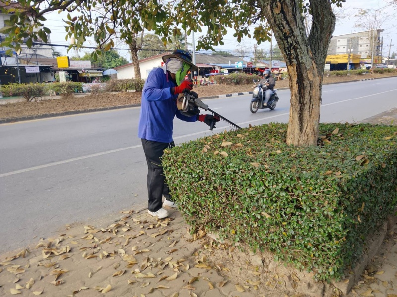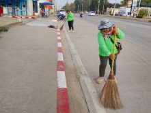พัฒนาตัดหญ้าและเก็บขยะสองข้างทาง บนถนนสายหลัก