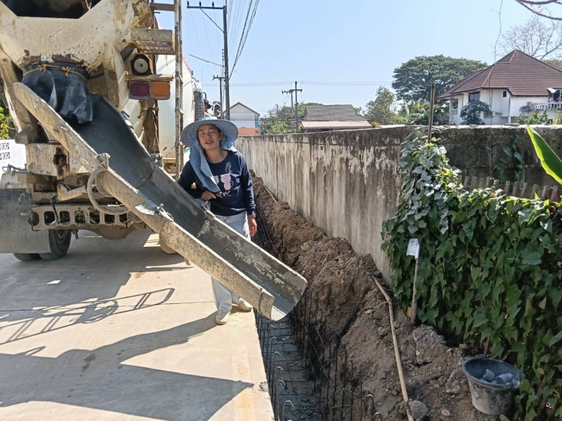เทปูนผนังรางระบายน้ำ ซอย 2 ชุมชนไร่สหกรณ์