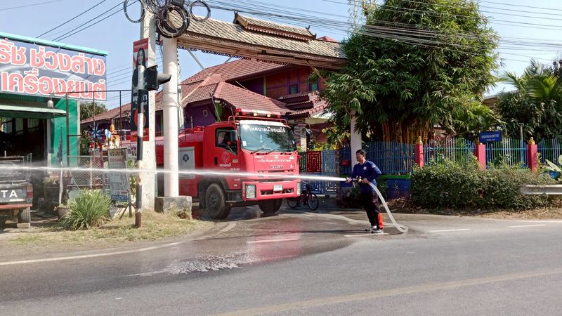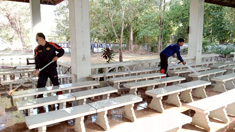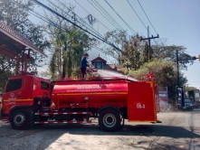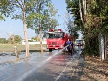 ฉีดล้างถนนและพรมน้ำลดฝุ่นละออง (PM 2.5) บริเวณชุมชนหนองทราย